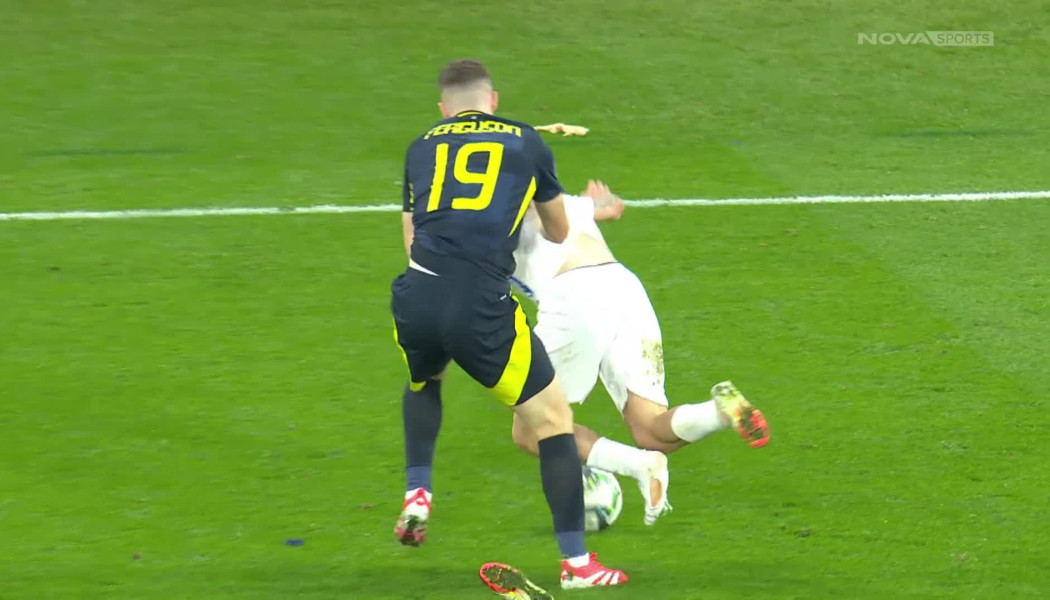 Ο Έλληνας διεθνής δέχτηκε το μαρκάρισμα του Φέργκιουσον, με αποτέλεσμα να του βγει το παπούτσι και να σκιστεί η κάλτσα του!