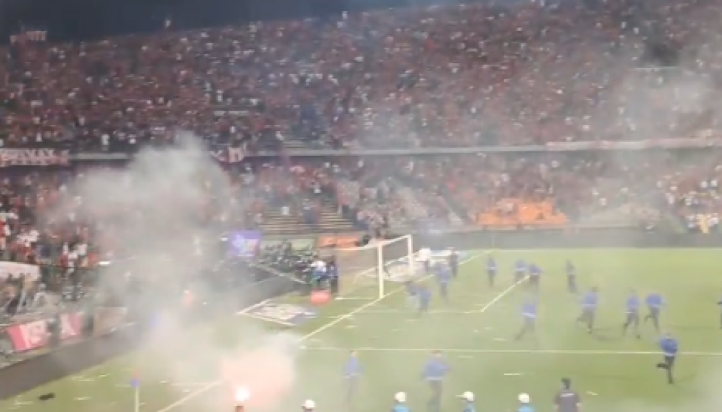 Όλα ξεκίνησαν όταν οπαδοί της Μεντεγίν έκαναν «ντου» μέσα στον αγωνιστικό χώρο, κινούμενοι απειλητικά προς τους αντίπαλους φιλάθλους.