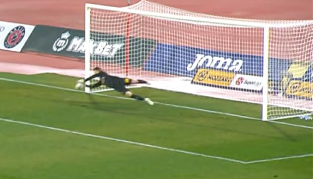 Εκτέλεσε άσχημα, η μπάλα χτύπησε πρώτα σε ένα δοκάρι και μετά σε ένα άλλο και επέστρεψε στο γήπεδο, μετά το οποίο αποβλήθηκε από έναν παίκτη της Τρίαλ.